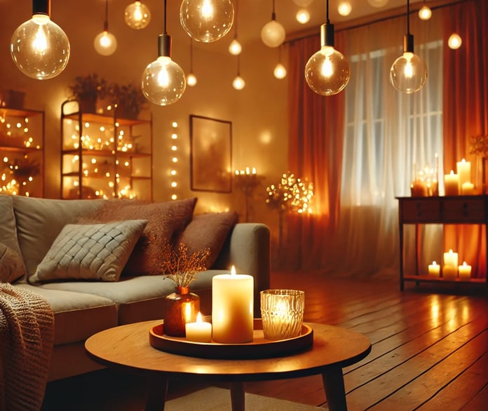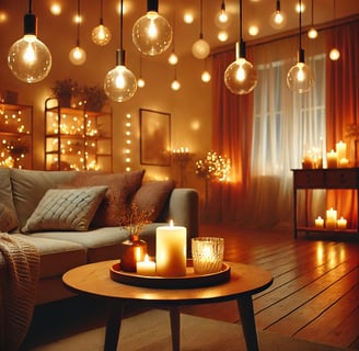 Lighting plays a crucial role in setting the mood of a space. Warm lighting makes a room feel intimate and inviting. Swap out harsh white bulbs for warm-toned LEDs, add dimmable lights, and incorporate candles or fairy lights to create a soft glow. Table lamps and floor lamps with warm bulbs are great alternatives to harsh overhead lighting. If you love candles, opt for scented ones that add both ambiance and fragrance to your space. String lights draped around a window or bookshelf can add a magical touch to any room.