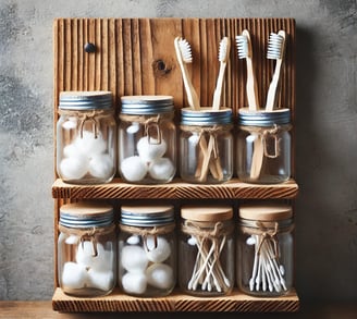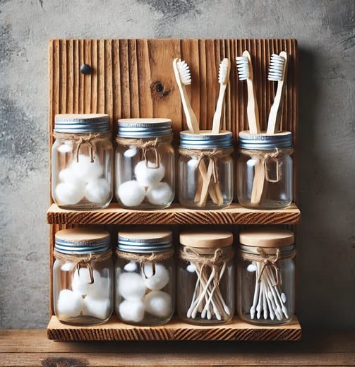 Wall-mounted Mason Jar Organizers for bathroom essentials.